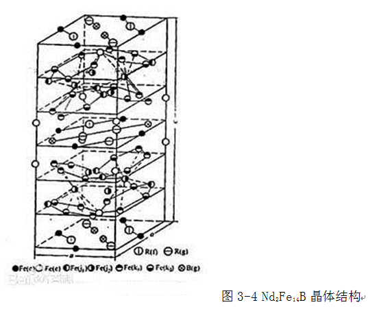 永磁材料有着特殊的晶格结构,如图3-4,Nd2Fe14B晶体结构,这种晶体结构使得电子在易子的碰撞作用下,只能延着固定的通道绕着一组组的分子群转动,就像二极管的单向性一样,电子的转动在易子气中形成许许多多的易子气旋风,如图3-5所示,这种易子气气旋就是磁场。